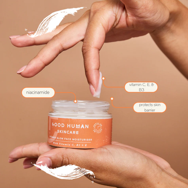 Daily Vitamin C Moisturiser for GLOWING skin. A hydrating, cream moisturiser that’s suitable for all skin types. Niacinamide, Vitamin C, E & Aloe vera creates a daily protective barrier which will: