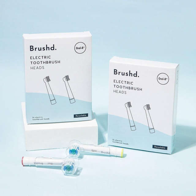 Our recyclable toothbrush heads are compatible with round head Oral-B* & Philips Sonicare Electric Toothbrushes. Return heads with the pre-paid compostable pouch for recycling. The heads are separated by composition, shredded, melted & made into new products. *Oral-B are 3rd party trademarks, no affiliation to Brushd.
