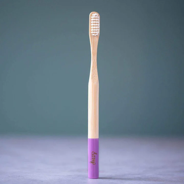 It is made from fast-growing, organic, naturally antibacterial & antifungal bamboo. The medium bristles are made from renewable castor oil making for an all-round eco-friendly toothbrush: petroleum-free, vegan & BPA-free.